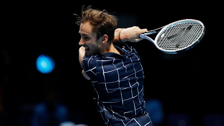 Теннис Австралия Australian Open 2021-ATP-Финал. По итогам первого тура группы Токио-1970 россиянин Даниил Медведев и серб Новак Джокович являются лидерами квартета. Четвертый день 014216.